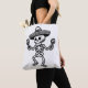 Ta med festen vart du än går med denna lekfulla totebag-design. Med en svart-vit skelett som dansar, skakar maracas och bär en mexikansk hatt, visar kulturellt inspirerade feststämning.