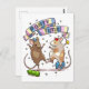 Rolig tecknad mus på ett vykort. Använd " Anpassa denna mall " för att ändra texten "PARTY TIME!" och skapa ett unikt, anpassat meddelande. Ett kort med två söta möss i festsnurror som dansar glatt medan konfetti och ett band faller runt dem, med ballonger utspridda på golvet.