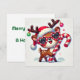 Fira säsongen med detta glada julkort med en bedårande dansande ren som håller ett sockerrör och bär hjärtformade glasögon. Den snöiga bakgrunden och festliga detaljer gör detta till ett perfekt val för att sprida julglädje. Personifiera det med ditt hjärtliga budskap till vänner och familj.