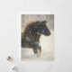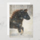 En slående akvarellillustration av en häst som galopperar genom lätt fallande snö. Den rika, flödande manen och det dynamiska rörelsen fångar vinterns vilda skönhet. Perfekt som julkort, säsongs hälsning eller året runt som en inspirationskälla för alla hästälskare eller naturälskare. Tom insida som väntar på din personliga hälsning.