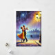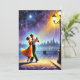 Det här fångar den romantiska scenen av ett par som dansar under gatlyktan med stadsbakgrunden.