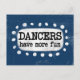 "Dansare har mer kul" är en söt textdesign med en vit accentform omgiven av vita fantasifulla prickar.