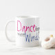 En beställnings- mugg med ditt namn och det utskrivavna uttryckt "dans börjar var ord avslutar.", Den gör en underbar gåva för en dansare eller en danslärare.