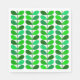Pappra blöjor i ett modernt danskt medelårhundrade inspirerade textila mönster av stiliserade löv - skuggor av grönt, från ljuskalk till mörk framträder, på vit bakgrund