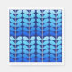 Pappra blöjor i ett modernt danskt medelårhundrade inspirerade textila mönster av stiliserade löv - blåa nyanser, från ljusblå himmel till djupa kobolt, accentuerade med vitt, på en mörk marin/indigoblå bakgrund