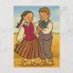 Detta vackra vykort fångar den lettiska kulturens pulserande anda med två glatta barn som är klädda i traditionella folkdräkter, dans i en gyllene skugga. Deras färgstarka attityd och lycklig-uttryck återspeglar den lettiska folklore, enighet och säsong firande. En glad illustration perfekt för folkdans älskare, kulturentusiaster eller någon som uppskattar baltisk charm.