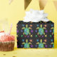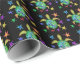 Grön havssköldpadda med en färgrik mosaikbaksida som omges, av ljust färgat dansa stjärnor. Gladlynt havssköldpaddadesign.