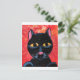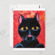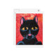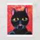 En söt liten svart katt med en grå röd och orange bakgrund.