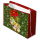 Att dansa Baby Änglar hängande från en Poinsettia-blomma där guld och vitt snöflingor faller på denna helgdag Gift Bag.