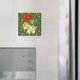 Att dansa Baby Änglar hängande från en Poinsettia-blomma med guld och vitt snöflingor på gröntens bakgrund för en söt helgdag-magnet!