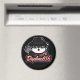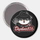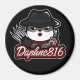 En svart magnet, med Daphne 816's Halloween-logotyp på den.