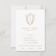 Detta antika bröllop OSA för guld och vit blommigt från Daphne-insamlingen är perfekt för ett vintage bröllop. Den enkla men klassiska designen har ett monogram för elegant och tidlös ornerad vapensköld med blommigtar och grön omgivning kring parets initialer. Svarskortet i bröllop frågar gästerna vilken måltid de vill ha på mottagningen.