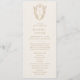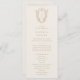 Detta botaniska grädde och guld-minimalistiska bröllopsprogram från Daphne-insamlingen är perfekt för ett traditionellt bröllop. Den enkla men klassiska designen har ett monogram för elegant och tidlös ornerad vapensköld med blommigtar och grön omgivning kring parets initialer. Ta med parets namn, datum och plats för bröllop, tack, serviceordning, bröllopsfest och ett minnesmärke "i kärleksfullt minne" som tillval.