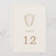 Dessa bordsnummer i elegant och guld bröllop från Daphne-insamlingen är perfekter för ett traditionellt bröllop. Den enkla men klassiska designen har ett monogram för elegant och tidlös ornerad vapensköld med blommigtar och grön omgivning kring parets initialer. Kortet skrivs ut på framsidan och baksidan (dubblan). Lägg till varje bordsnummer som du behöver i din kundvagn individuellt.