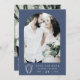 Detta mörk blått och vita botaniska moderna bröllop spara datum från Daphne-insamlingen är en perfekt för ett traditionellt bröllop. Den enkla men klassiska designen har ett monogram för elegant och tidlös vapensköld av royal med blommigtar och grön omgivning kring parets initialer. Anpassa framsidan av dina datumkort med ett foto, ditt monogram, namn och bröllop. Anpassa baksidan med ett annat foto, din bröllop webbplats adress och en QR-kod som gör det enkelt för dina gäster att få mer information om din stora dag.