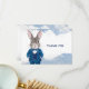 Snyggt och söt, den här Dapper Bunny i en blå skål och kostym parad med mjuk blå vattenfärg och silver konetti accents accents är perfekten att tacka gästerna för deras gåvor från mamma till till och från födelsedagskorgen. Designen innehåller all anpassade.