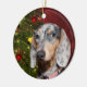 Cute kort hade en påsatt dachshund med Julgran och helgdag i bakgrunden hundälskare keramisk julprydnad