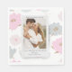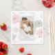 Där det hela Began Romantic Par Personlig Napkins har en modern blommigt för rosa av abstrakt med accenter från guld glitter. Lägg till ditt favoritfoto i mitten och texten om hur du träffades. Lär DIG (gör det själv) genom att redigera texten i de angivna textrutorna. Designad av ©Evco Studio www.zazzle.com/store/evcostudio