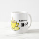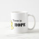 Ord ska bo på mugg för en tedrickare: Där det finns te finns HOPE. Mugg är vitt med rött handtag och insida och dekoreras med hand plockade te kopp i gultens nyanser. Du kan anpassa det med ditt namn i rött.