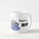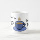 Ord ska bo på mugg för en tedrickare: Där det finns te finns HOPE. Mugg är dekorerat med ett hand plockade-te kopp i blå nyanser, och det kan vara personlig med ditt namn, även i blått.