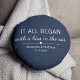 Där det hela började... Söt kudde med platsen och datumet ni möttes, med ett gott hjärta. Välj din egen färg och anpassa denna anpassade design med era egna namn och text. Perfekt gåva för att berätta din kärlekshistoria på Alla hjärtans dag, er årsdag eller bröllop, och fira början på något speciellt.