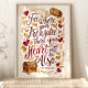 Inspirera till eftertanke och andlig tillväxt med denna vackra tolkning av Matteus 6:21. Den eleganta skriften, prydd med akvarellhjärtan och skattkistor, ger denna vers tidlösa visdom liv. Perfekt för att tillföra en touch av tro och eftertanke till din hemmiljö eller kontorsdekor.
