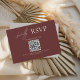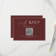 Modern kärlek förtjänar ett modernt OSA kort. Den här burgunda bröllopet OSA i eleganten har en ren minimalistisk layout med tidlös vit typografi och QR-kod. Utformningen passar perfekt för contemporary, romantiska eller uppskalningsbara bröllop-teman och balanserar enkelhet med känslomässig värme. Anpassade för namn, datum, plats och all information om nyckel. Perfekt för par som vill ha ett rent och snyggt tillkännagivande som anger tonen för en meningsfull och oförglömlig dag. Koppla ihop det med vår matchning Spara datumkort, inbjudningar, kuvertförseglingar och mycket mer i fullt koordineringssviten.
