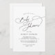 Den här enkla boho QR-inbjudan från Darcy Collection är perfekt för en enkel babydusch. Den moderna minimalistiska designen har en tidlös svart och vit romantisk kalligrafi med bohemisk sagoland stil. Anpassa baksidan med ett meddelande om gender, bokar för baby, blöjraffel, QR-kod för register och/eller annan ytterligare information som kan vara till hjälp för dina gäster.