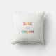 Mjuk och bekväm kudde med färgfull fet designtext.