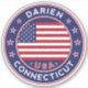 Darien Connecticut, staden Darien-dekal med flagga av United Stater, rundad form