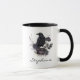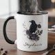 Set the tone for a moody gothic morning with this elegant personalized ceramic mug. The design features a detailed raven perched among dark roses and vintage botanicals rendered in a sophisticated black and plum palette. It is the perfect way to celebrate a special occasion or a thoughtful gift for a bird enthusiast.