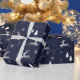 Dark Background Wrapping Paper with Silver Reindee Presentpapper