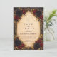 A bold and dramatic design inspired by gothic romance and baroque opulence, featuring deep crimson roses, black dahlias, and rich golden foliage woven into an ornate antique frame. The warm parchment center glows against the dark, moody background, creating a striking contrast that feels both luxurious and timeless. Intricate details and layered florals add depth and intensity, making this design perfect for an unforgettable evening celebration filled with elegance, mystery, and old-world charm.