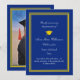 Proudly announce the graduation of a child with this colorful contemporary card. Photo and dark blue background with gold borders. The photo and all text are easily changed with the template. Selecting “Personalize this design” offers you several edit options to easily change the text (wording, plus type font, color, size, position) and to edit the design elements. You may also want to scroll down to the section “Transfer design to a product” for a few suggestions about other items this design can be used on. Downloadable for sending by phone or email.