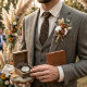 Rich dark brown necktie with an elegant repeating pattern of oak leaves and acorns in warm golden-brown tones. The design has a classic, sophisticated damask feel — detailed but not overwhelming. It gives off a warm, timeless vibe that works great for autumn weddings, formal events, or everyday business wear when you want something a bit more interesting than a solid tie.
