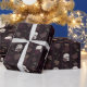 Dark Burgundy Gothic Skull & Rose Stripes Presentpapper