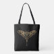 Make a statement with this elegant noir and gold moth tote bag. Featuring a bold minimalist design on a deep black background, it blends dark sophistication with everyday practicality.