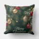 Introduce a touch of holiday glamour with this luxurious "Merry Christmas" throw pillow. Set against a deep, elegant emerald green background, the rich pattern features classic red and gold ornaments interspersed with festive pine needles. This design offers a sophisticated, dramatic flair to any room. The dark color palette is perfect for creating a cozy, high-end look. Elevate your decor with this opulent holiday statement.