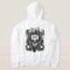 A hauntingly beautiful monochromatic artwork featuring a skull adorned with intricate floral designs and flowing hair-like patterns. Surrounding the skull are mystical elements such as moons, abstract creatures, and textured details, creating an eerie yet mesmerizing aesthetic. Perfect for fans of gothic art, surrealism, and dark fantasy.