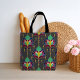 This rich, decorative botanical motif showcases elegant jewel tones and intricate flourishes, with bright petals outlined in gold and set against a deep-colored background. It's a perfect blend of bohemian glam and retro charm. Inspired by the art deco patterns of the 1920s.