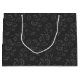 This refined floral pattern features stylized blossoms and curling vines in soft gray tones against a deep charcoal backdrop. The monochrome palette and symmetrical repeat lend a sense of quiet sophistication, making it perfect for modern, minimalist, or formal themes. Ideal for upscale stationery, digital backdrops, or interior accents, this design blends subtle contrast with timeless botanical charm.