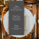 Perfect for display on tables, bars, or buffet stations, this menu card adds a polished finishing touch to your décor while keeping guests informed in style. Personalize each course to reflect your unique menu and create a cohesive, elevated look throughout your event.