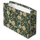 Dark green wallpaper pattern featuring repeating stylized yellow flowers interspersed with sage green leaves and swirling vines.