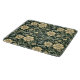 Dark green wallpaper pattern featuring repeating stylized yellow flowers interspersed with sage green leaves and swirling vines.