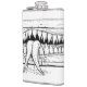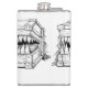 This dark and surreal illustration features a horrifying monster chest filled with sharp teeth and a long dripping tongue, drawn in a detailed black and white ink style.