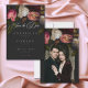 Make a bold statement with this dark moody floral romantic rose fine art wedding photo save the date card design. Featuring lush white, burgundy and pink blooms on a deep black background, it is perfect for a sophisticated evening or winter ceremony. This dramatic aesthetic offers a luxurious, high-end feel for your special day. Created by Simply Farmhouse Press.
