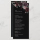 Dark moody romantic roses menu card with bride and groom name and the wedding date on the backside.