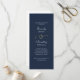 This simple white script print on a dark navy blue background with a gold ampersand is an elegant program for your wedding day. Personalize all the information including ceremony details and attendants on the back with the same script font