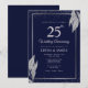 Dark Navy Blue Silver Leaf Wedding Anniversary Invitation
