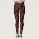 Dark Red Christmas Floral Pattern Leggings